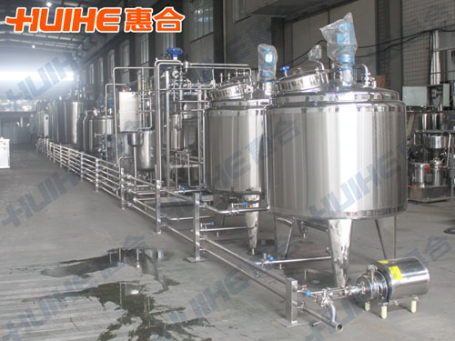 This yogurt production line consists of a water treatment equipment, a high-speed mixing cylinder, a milk tank,a blending tank, a fermentation tank, CIP cleaning system, a storage tank and pipelines.Manufactured by Huihe Machine, all the equipment meet the national hygiene standards.