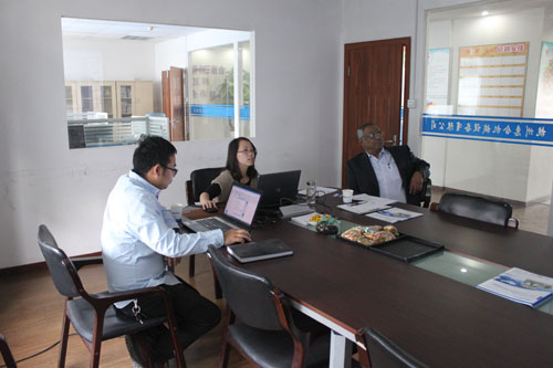 The customer from India need a machine to sterilize milk packed in plastic bottles so he comes to our company to purchase autoclave. The follow picture is our sales manager show the PPT to the customer and then takes the customer to our factory. The customer talks about the detail sterilization process with our engineer.
