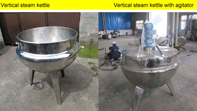 Vertical steam heating jacketed kettle(agitating) is also named vertical steam heating double-layer cauldron. Usually composed of pot and hold feet, and the pot is the double layer structure formed by inside and outside spherical pot; middle layer can add steam to steam. It has characteristics such as big heating area, high thermal efficiency, uniform heating, short boiling time, easy control of the heating temperature etc. Not only has good-appearance, but also easy to install and operate. It is safe and convenient. Now it has been widely applied in food processing. Some large restaurants and canteens also use it to boil soup, cook, stew and porridge. It is considered to be the ideal equipment in the area of improving quality, shortening the time and improving working conditions