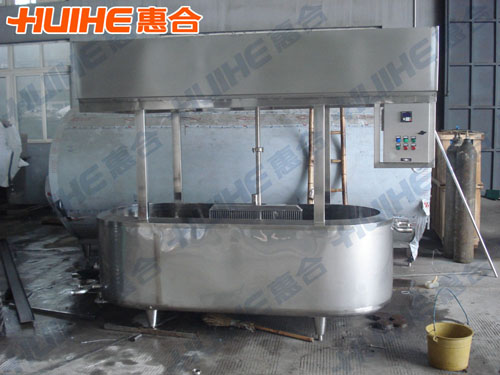 The enzyme activity of the rennet causes the milk to coagulate to a solid gel known as coagulum. This is cut with special cutting tools into small cubes of the desired size to facilitate expulsion of whey. During the rest of the curd making process the bacteria grow and form lactic acid, and the curd grains are subjected to mechanical treatment with stirring tools, while at the same time the curd is heated according to a preset program. The combined effect of these three actions – growth of bacteria, mechanical treatment and heat treatment – results in syneresis, i.e. separation of whey from the curd grains. The finished curd is placed in cheese moulds, which determine the shape of the finished cheese. The cheese is pressed, either by its own weight or by applying pressure to the moulds. Finally, the cheese is coated, wrapped or packed. Most kinds of cheese will ripened in the ripening room for deferent period. ,