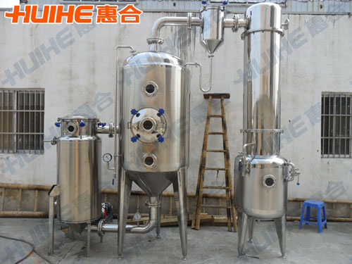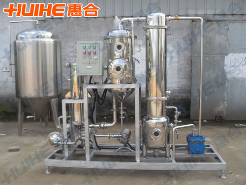 2、濃縮液料: 單效濃縮器采用外加熱自然循環(huán)與真空負(fù)壓蒸發(fā)相結(jié)合的方式,蒸發(fā)速度快,濃縮比可達(dá)1.3,液料在全密封狀態(tài)濃縮,用單效濃縮器濃縮出來的藥液,具有低污染,藥味濃的特點(diǎn),而且清洗方便(打開加熱器的上下蓋即可進(jìn)行清洗)。