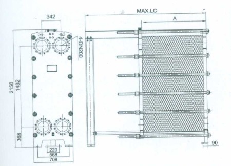 板式換熱器是由固定擋板、板片、移動擋板、立柱、上導(dǎo)軌、下導(dǎo)軌及固定螺栓組成。在固定擋板及移動擋板之間是一系列被固定的板片。每片板片均有墊圈,所以板片間構(gòu)成相互平行的封閉流道,介質(zhì)在每兩塊板片之間交替流動。